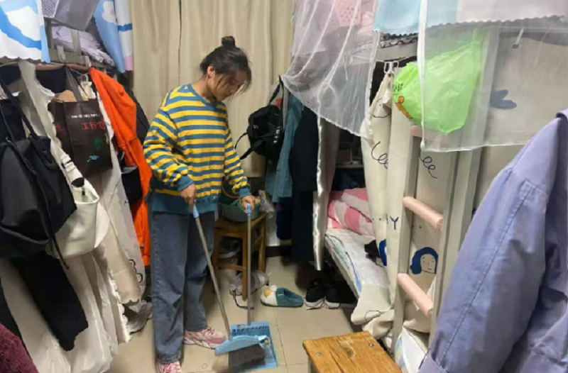活动过程中,同学们明确职责,统筹安排,进行了具体分工。对玻璃、门窗进行擦洗除尘,擦洗桌凳,清扫地面,并对床铺进行了整理。随后又对宿舍楼道进行了全方位的清扫。每一个跃动的身影都挥洒着劳动的热情,每一个撸起袖子加油干的劲头都化作了整理宿舍的力量,通过大家辛勤的劳动,营造出了一个个洁净整齐、焕然一新的靓丽宿舍。