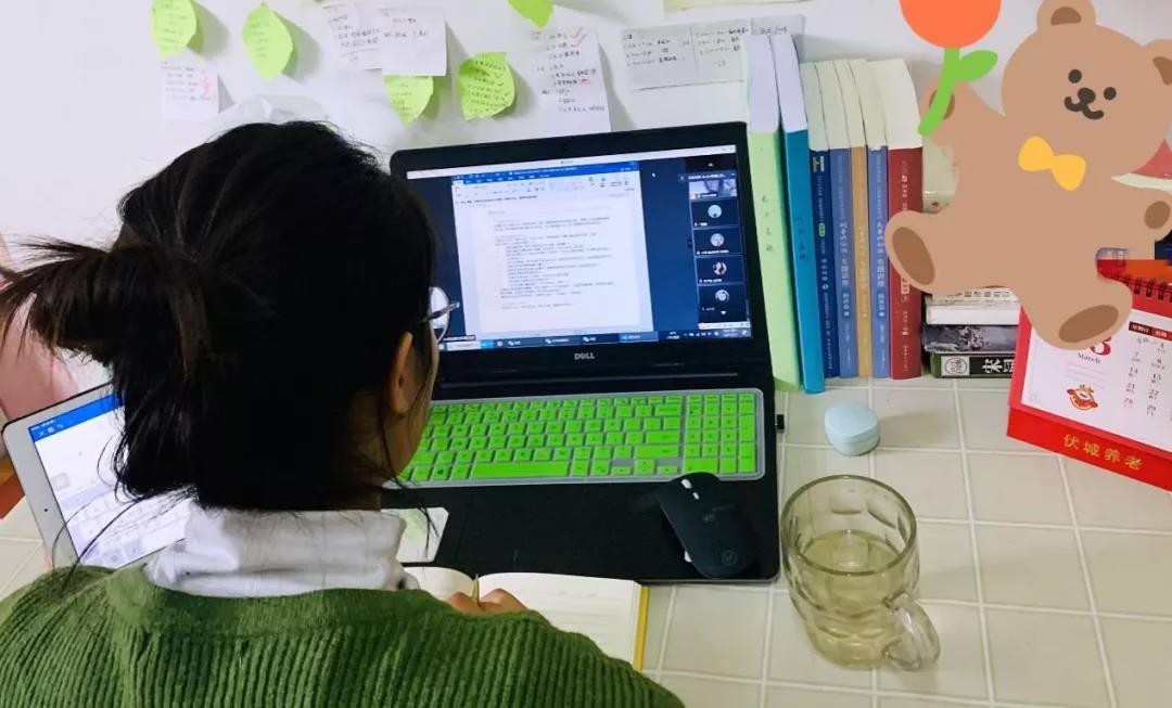 但由于无法面对面的交流而导致反馈周期拉长,她开玩笑说:“上网课感觉自己像进入了一场选秀,每天对着镜头展示才艺。那也希望各位同学制作人多多pick我,课上发‘弹幕’,课下有反馈,及时交流沟通,一起期待春暖花开,线下相聚的那天!”