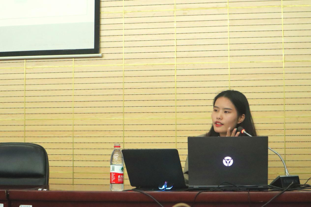 侯美芝同学首先就本次交流会的主题,为同学们介绍了“三创”挑战赛和“互联网+”大赛的形式、赛制等,并结合自己参与的创新创业项目为同学们介绍了所在团队项目设立的背景、主要产品和服务等方面的内容,讲述了自己参加各项比赛的经历和感受,让同学们对创新创业项目的大致模式有了一定的了解。随后,她分享了一些含金量很高的创新创业类比赛,鼓励同学们多关注比赛信息,多参赛、提升自我。