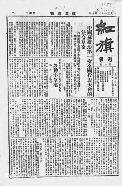 《红旗周报》1931年3月9日在上海创刊。它是由《红旗日报》改名而来,该报在宣传中国共产党的政治主张上起到了一定作用。在反动派白色恐怖的严酷环境下,《红旗周报》不能公开出版发行,为了掩护其真实面目,封面常以“实业周报”、“佛学研究”等假封面出现。这段历史也反映了中国共产党人早期办报活动的异常艰辛以及中国共产党人为党的新闻事业而努力的坚定信念。