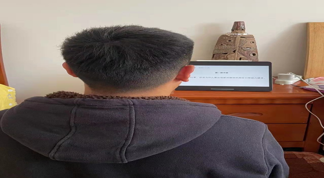 蒋建设老师是一名颇为可爱的老师,面对设备问题,些许紧张,但他亲切的语调和蔼的态度迅速拉近了和同学们之间的距离。虽说是语言类的学科,但蒋老师巧用古代历史以及典故趣闻将晦涩的知识简单明白传达给我们,使我们真切感受到了学习的趣味。