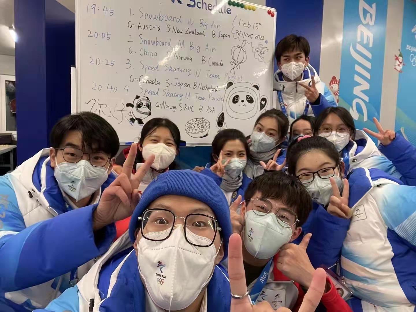 共有14名同学分别参加开幕式演出及志愿服务,其中包括3名开幕式演员、4名城市志愿者和7名赛会志愿者。他们肩负荣光,在各自的冬奥岗位上圆满完成了任务,在这场世界性的盛会中展现了新传人勇争先、担大任的优秀品质。