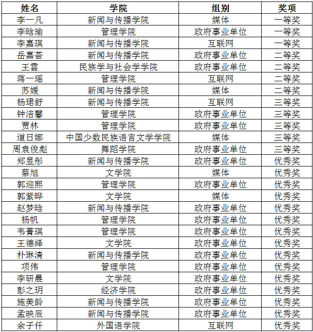 经各位评委认真打分,本次模拟面试大赛获奖名单如下: