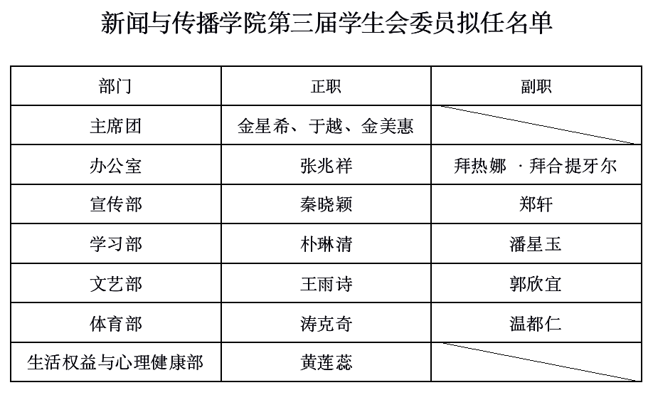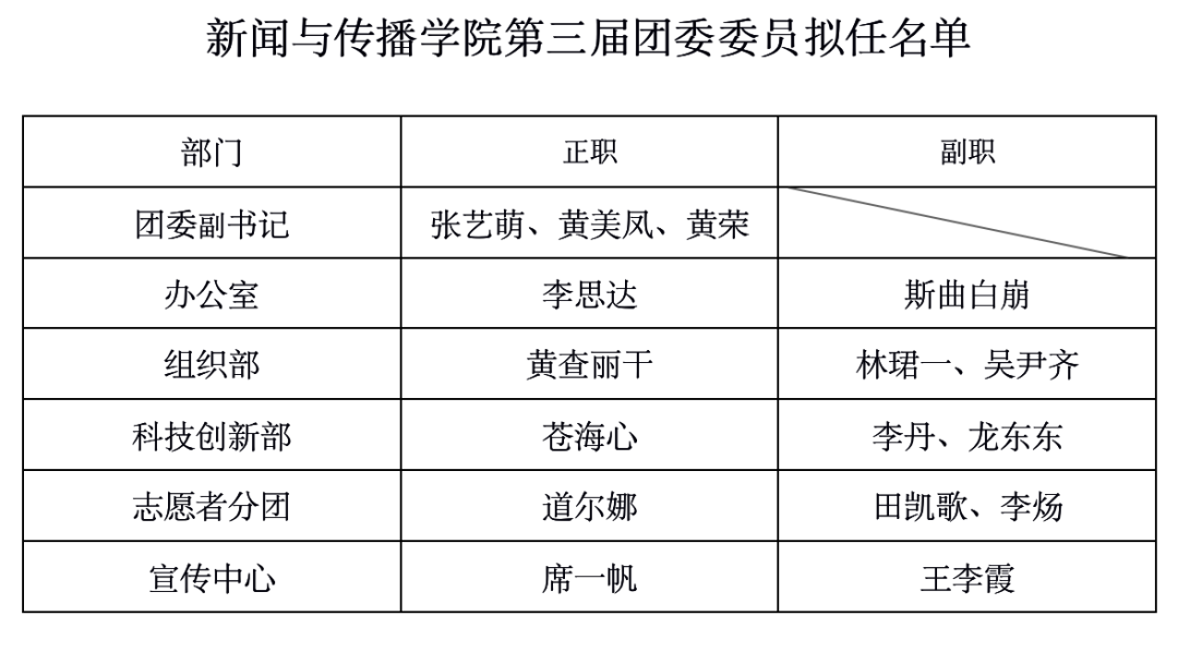 第三届团委、学生会委员,现将拟任用人选名单公示如下: