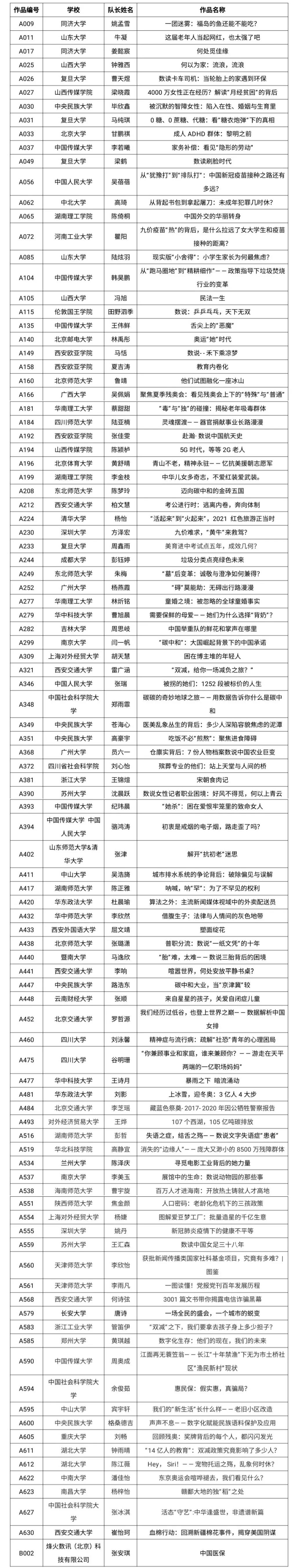 截至2021年10月29日,本届数据新闻大赛在网络投票阶段,累积投票数为638,810,投票总热度达1,734,759次。经过专业评委的初筛、网络投票以及二轮复审,组委会在进入复赛的356个作品中,共选出100个参赛作品进入最终的决赛。入围作品由投票竞选(票数前三名直接入围)和专家小组评选共同产生。