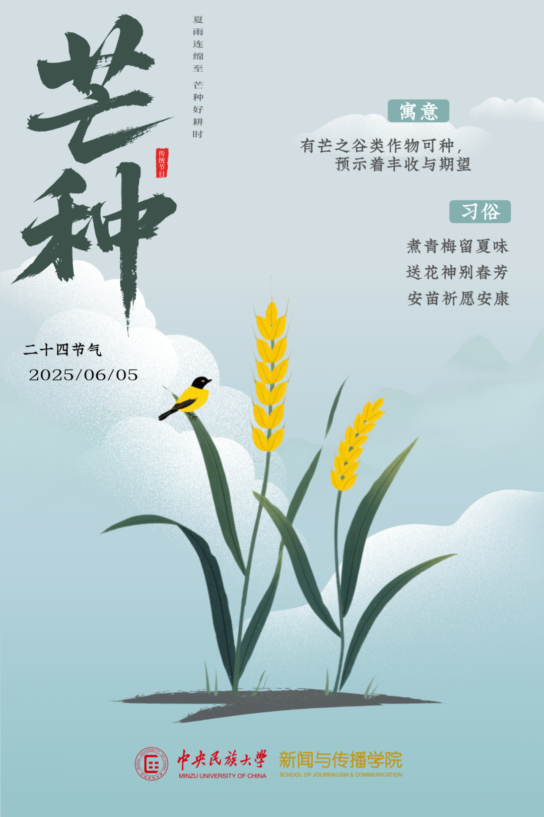 芒种 | 麦黄梅熟 时雨丰年BB体育 新闻与传播学院 2025年06月05日 09:14 北京海报 | 平面设计工作坊编辑 | 金润易 彭兆源执行编辑 | 张子晗 邹欣桐主编 | 权姗姗审核 | 毛湛文 张垒 曲强 孙熙 易婧 ...